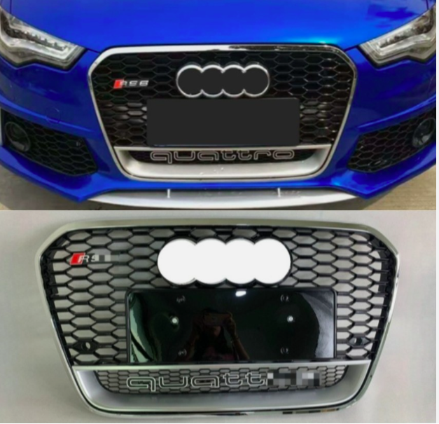 Front bumper Honeycomb Grille, RS6 Style Chrome ring, Audi A6 S6 C7 2012-2015